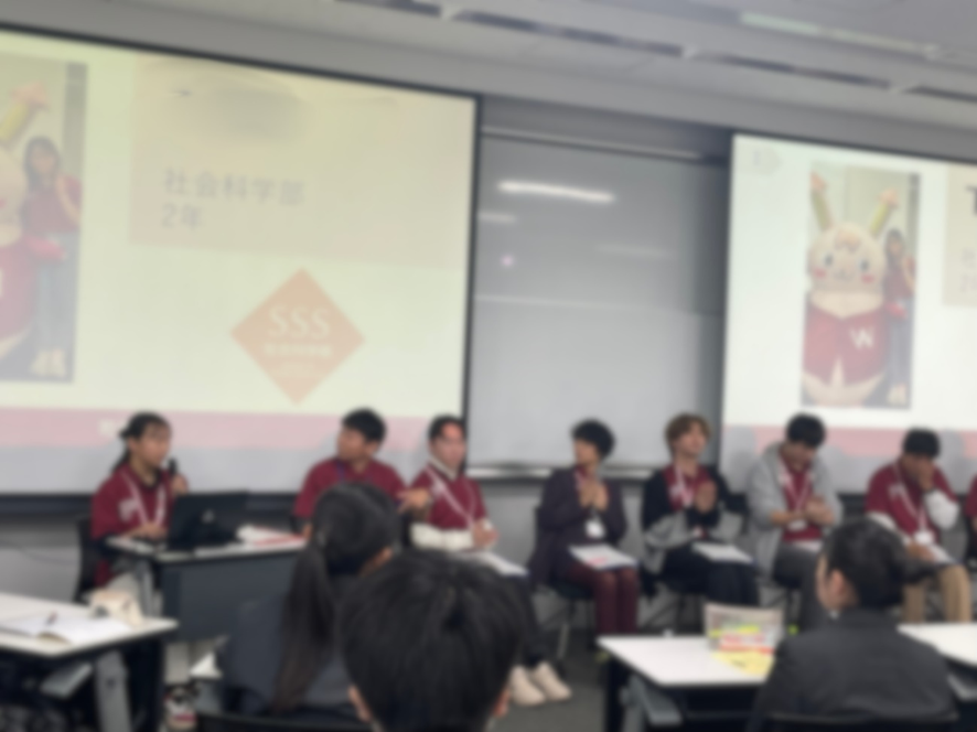 己紹介・大学生活紹介をし、その後、質疑応答をして進めていくというものでした。