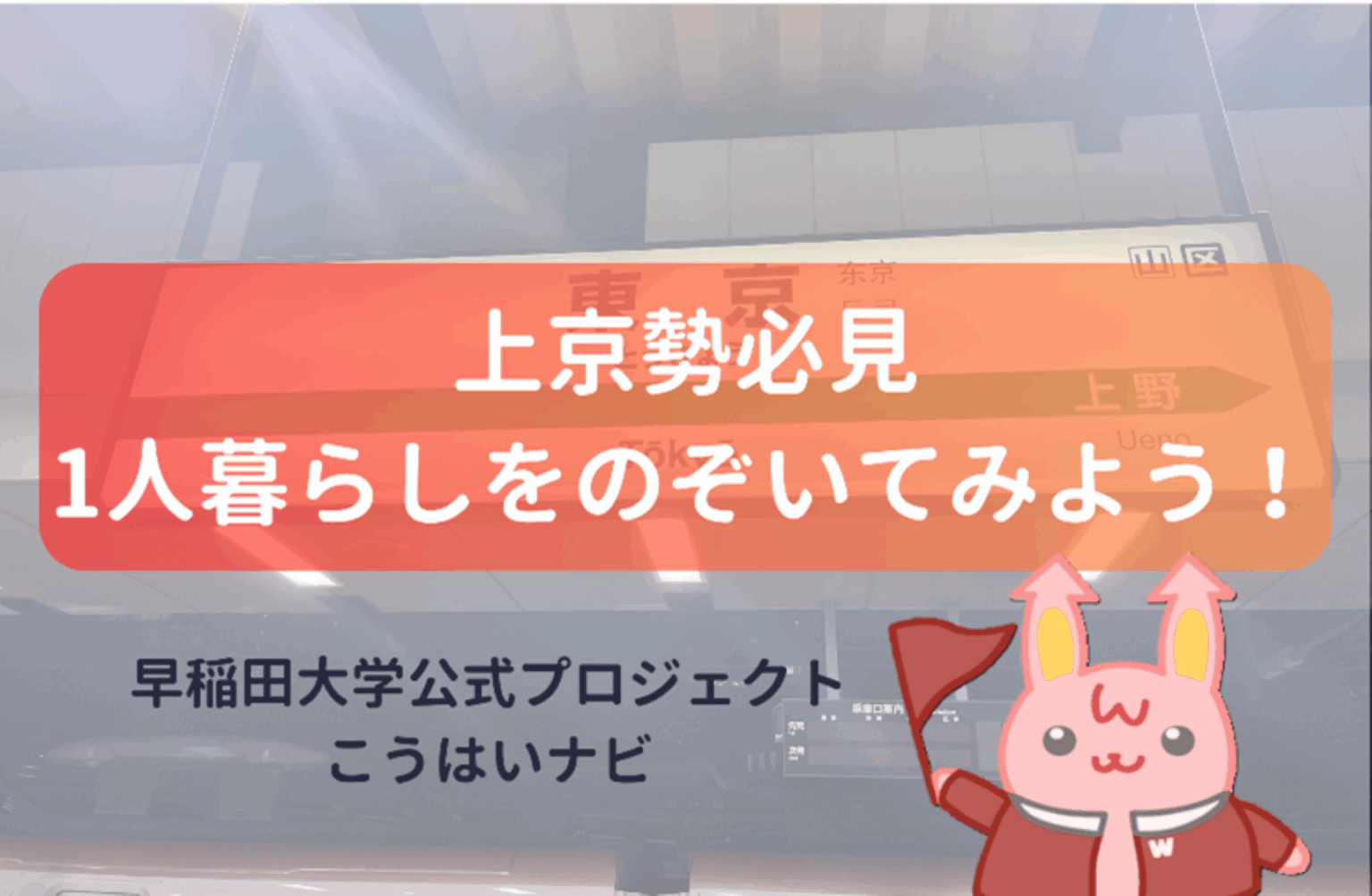 皆さんこんにちは!教育学部4年学生スタッフのKです!今回は1人暮らしをする予定の方へ向けて、僕の生活の様子をご紹介したいと思います。 目次 1.部屋紹介 2.食事 3.洗濯・掃除 4.お金事情 5.気を付けること 1.部 … 続きを読む 【上京勢必見】 1人暮らしをのぞいてみよう!!
